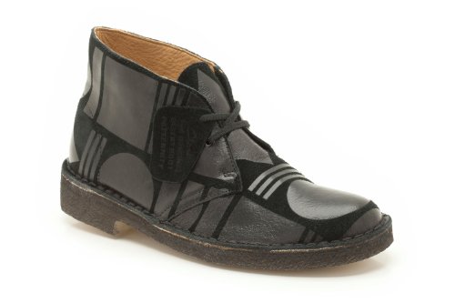 London-based design company PATTERNITY are obsessed with patterns so we joined forces with them to create a unique graphic for our iconic Clarks Originals women's Desert Boots. Designed in 1949 by Nathan Clark the Desert Boot has been much imitated but never bettered. The embossed print in black suede adds energy to the simple, clean lines and the look is finished with laces and a signature crepe sole. This style is available for home delivery only and comes in a narrow fit so we advise ordering half a size larger than normal.